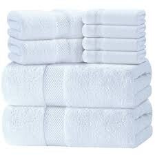 Experience luxury with our White 8-Piece Towel Set, featuring ultra-soft, highly absorbent towels designed for ultimate comfort. Crafted from premium Turkish cotton, each towel boasts double-stitched edges for added durability and long-lasting quality. Perfect for transforming your bathroom into a spa-like retreat, this premium set offers a plush, lint-free feel with quick-drying performance. Don't miss out on this incredible deal—prices will increase in just a few days! Elevate your bathing experience with this luxurious, must-have towel set today!